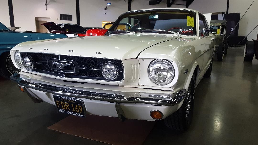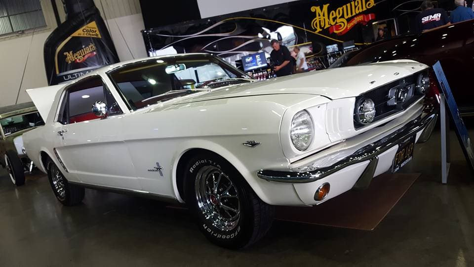 1965 Ford Mustang Coupe. Wimbledon White with a red pony interior. Original 289 V8 engine. Car has been restored to factory condition with a few minor modifications for performance. The vehicle has been sponsored by Meguiar's since 2017.